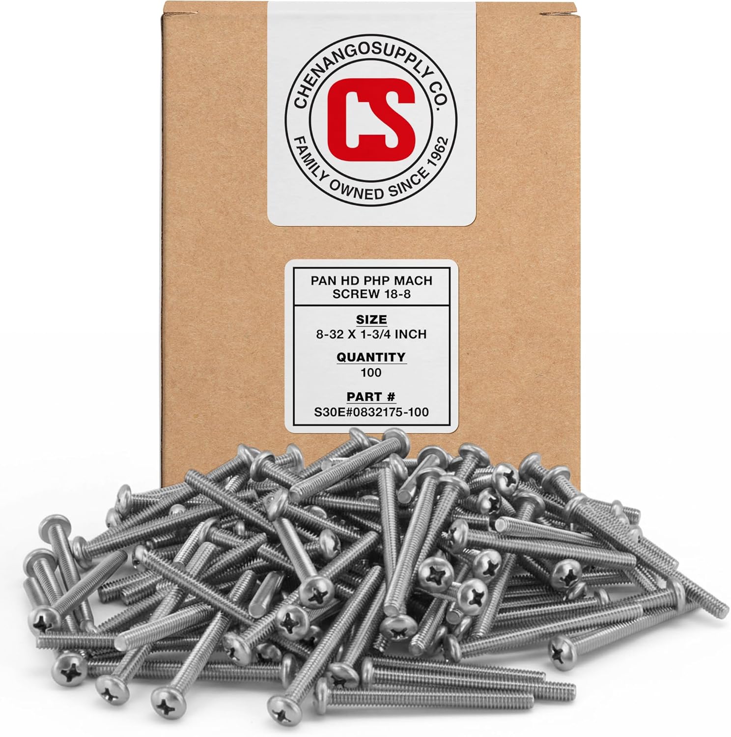 Industrial-grade 18-8 stainless steel machine screws engineered for assembly, repair, and equipment fabrication tasks requiring corrosion resistance, consistent threading, and reliable torque engagement. Specifications Material: 18-8 stainless steel Head type: Pan head Drive type: Phillips (#2 tip size) Thread size: 8-32 Length: 2-1/2 inches (measured under the head) Thread: Full machine thread Quantity: 100 pieces Performance & Application Explanation Pan head machine screws offer a broad bearing surface with a low-profile rounded head for secure fastening in metal, plastics, and electrical or mechanical assemblies. The #2 Phillips drive provides stable torque transmission for hand tools or powered drivers. Fully threaded shanks support maximum engagement in tapped holes, brackets, housings, and hardware fixtures. B2B Use Cases Suitable for equipment maintenance, fabrication shops, electrical installations, fixture assembly, appliance repairs, and general MRO applications where precise 8-32 machine screws are required. Quality & Trust Reassurance Constructed from 18-8 stainless steel for corrosion resistance and long-term reliability. Threading, dimensions, and head geometry support the performance expectations of industrial buyers, technicians, and contractors.