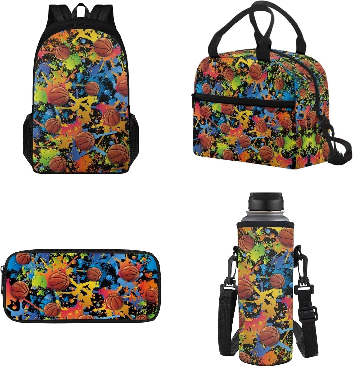 đ¸Tomeusey 4 in 1 School Backpack for Teens with Insulated Lunch Bag Pencil Case Pouch Water Bottle Carrier Bag 17 Inch School Bags Book Bag for Kids -The large capacity printed school backpack is lightweight and sturdy, equipped with adjustable padded shoulder straps, providing support and comfort for children to carry. -The lunch bag's carry strap is ergonomically designed to reduce pressure, so you won't get tired of holding it for a long time Plenty of space capacity, easy to carry favorite food. -The pencil case can organize pencils, erasers, rulers, etc. in an orderly manner, suitable for school, home learning, and outdoor learning. -The water bottle sleeve is soft and wear-resistant, which can protect the water cup very well. It is suitable for most stainless steel cups, glass cups, ceramic cups, plastic cups, etc. -The 4 in 1 set includes school backpack+insulated lunch bag+pencil case+water bottle holder can be used as a backpack, daily bag, and leisure backpack. -Suitable for kids boys girls over 3 years old, suitable for adults, teenagers and children for school, shopping, dating, traveling, camping, outdoor activities, etc. ăWashing Methodă Suggest hand washing, do not soak for a long time, do not bleach, the temperature of the washing liquid should not exceed 45ÂşC. ăNoteă Please contact us if you have any questions about the use of our product. đĄAbout Tomeusey Brand We are a company integrating production and sales. If you have your own design, we provide custom backpack set service. we also provide a variety of color style products for you to choose, we are committed to bringing customers a new experience, and maximizing the experience of your life!