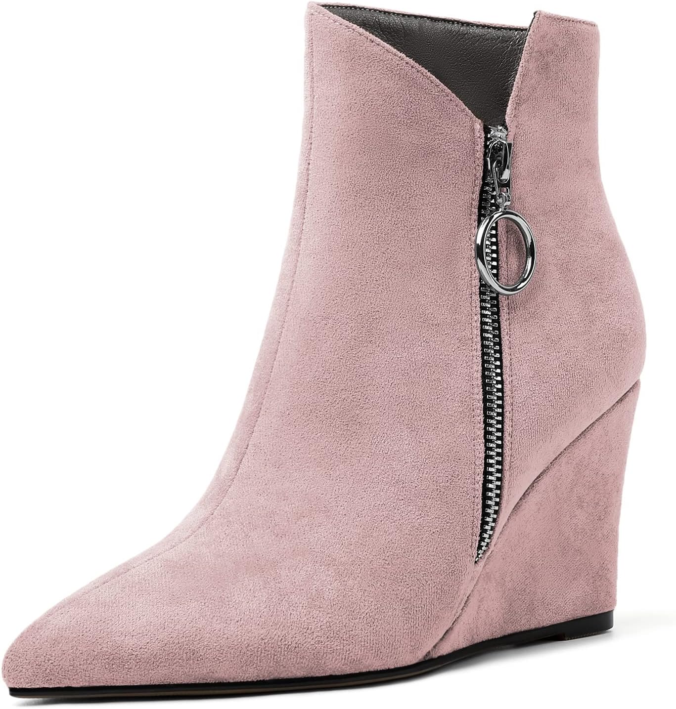 ★Eldof Women's Pointed Toe Wedge Heel Ankle Boots Zip Closure Heel Height: 3.5 Inches Toe Type: Pointed Toe. Material: Soft and Comfortable insloe. Strudy and Non-slip rubber outsole. Designed for a stable walking posture, providing cushioning, stability and support. Make sure your shoes can be used for a long time. Suitable for walking around all day. A must-have classic and comfortable wedge heel ankle boots! Pairs perfectly with your jeans, dress, etc.! Match Tips: Work/ Party/ Date/ Wedding/ Travel/ Office work/ Professional/ Performance/ Graduation. Good Gift: For women on Birthday, Anniversary, Mother's Day, Valentine's Day, Christmas Gifts, etc. After Service: Please let us know if there is any problems. We will solve it as soon as possible until you're satisfied. ★Size Information: Size Chart=Foot length(mm) US5==222mm US6==230mm US7==238mm US7.5==242mm US8==247mm US8.5==251mm US9==256mm US9.5==261mm US10==264mm US10.5==268mm US11==272mm US11.5==277mm US12==281mm US12.5==285mm US13==289mm ★Eldof, your best choice.★