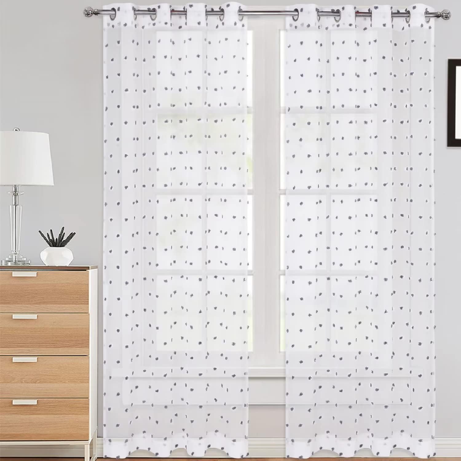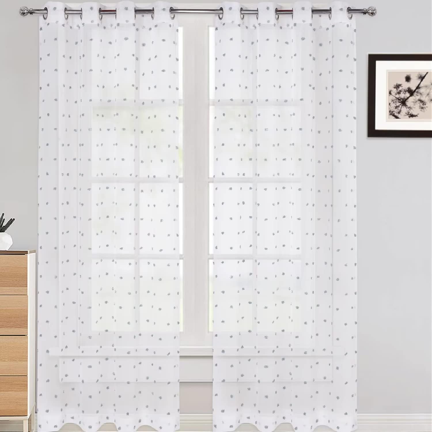 Our voile sheer curtains are all made of premium polyester material. This kind of soft and durable fabric is perfect for curtain making. The curtain panels are woven with cute dots pattern which will refresh your window and decorate your whole room warmer and more comfortable.★ Package Included: 2 pieces of curtains panels. Each curtains measure 52 inch width with different length, you can choose the perfect length to match your window★ Best gifts for your family members, good friends including yourself★ Ideal decoration for indoor decor, semi-sheer drapes can protect your privacy effectively★ The metal grommets on the curtains slides smoothly and can be used for a long time.★ Perfect decoration for living room, bedroom, dining room, home office, studying room etc★ Size information: 52”W x 63 ”L / 52”W x 84 ”L / 52”W x 95 ”L