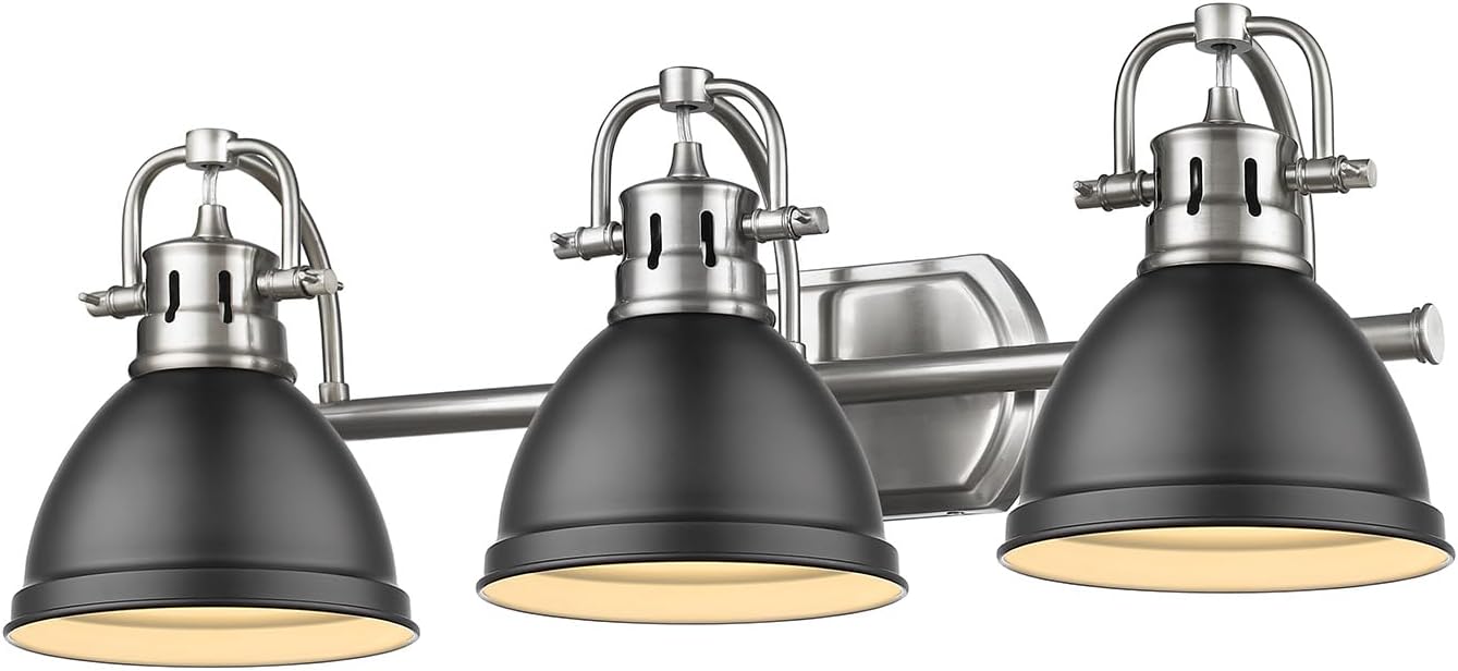 Transform the look of your room with this classic, vintage-inspired fixture by Golden Lighting. Golden Lighting's Duncan collection is contemporary style with an industrial feel. The collection features a variety of simple, traditional silhouettes that are a nod to a bygone era. A variety of plated and painted metal shade finishes are offered in combination with durable Aged Brass, Black, Chrome or Pewter fixture bodies. This 1-light bath vanity is perfect for modern or contemporary style home decors.