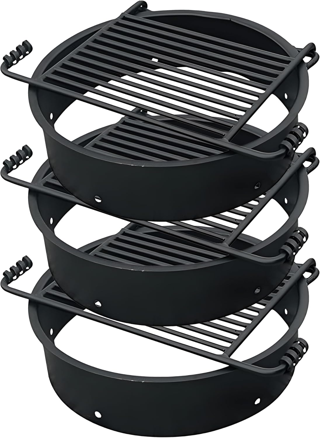 Roast marshmallows, tell spooky stories, snuggle your loved ones, and sing songs around the Pilot Rock 24-Inch Ground Fire Pit Rings. Constructed from heavy-gauge rolled steel, these durable firepit liners feature a 1-inch top flange for added strength against intense campfire heat. Stay toasty on a chilly night by warming your hands over the open flame or use the attached metal grate to cook up a savory meal or late night snack. With double-welded solid steel bars, these cooking and campfire accessories are sure to last long after your first camping trip and beyond. Whether baking potatoes or smoking burgers, the 265-square-inch surface covers all your outdoor grilling needs. This essential backyard campfire accessory is ideal for use with in-ground firepits. When not meal prepping, easily lift the 180-degree swivel grate out of the way to build a wood fire or sweep away the ashes. These 24-inch inserts hold up the structural integrity of your firepits, and draft holes ventilate smoke so you and your backyard equipment stay safe for long-lasting use. This ring arrives fully welded so all you have to do is attach the grate and handle before you're ready to relax and grill. After the sun has set, gather around the Pilot Rock 24-Inch Fire Pit Rings to eat smores or strum your guitar all night long.