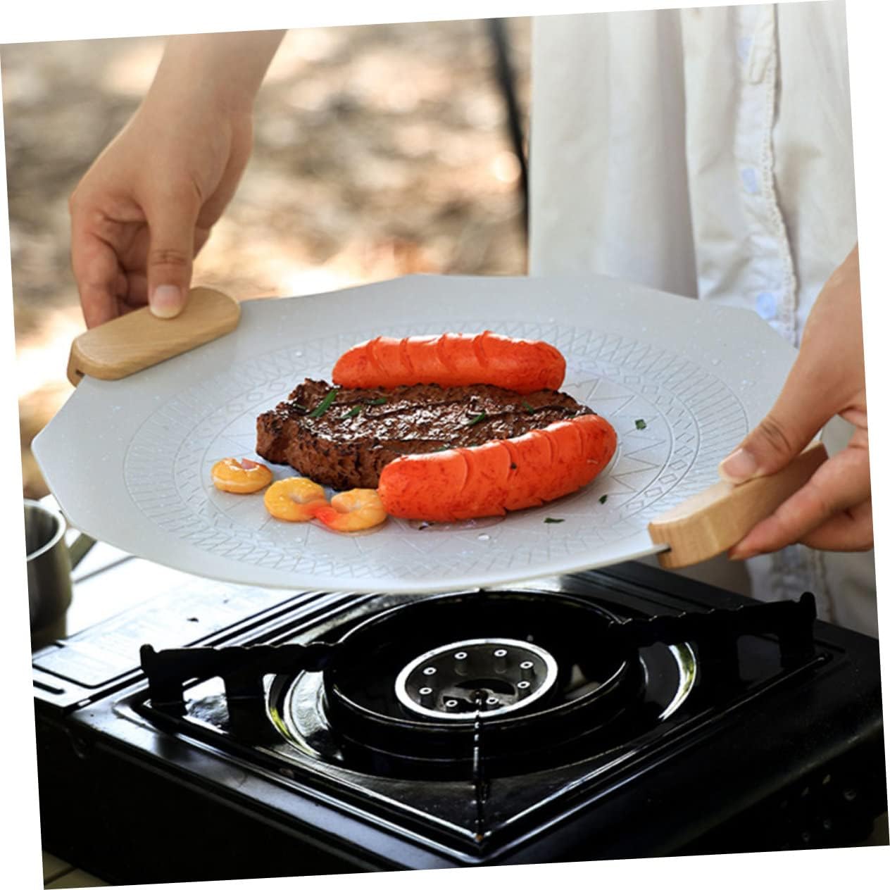 Package List 1 x grilling pan Characteristics -Material: Aluminum grill tray -Color:White grilling accessories -Size: 34.00X34.00X0.19cm/13.36X13.36X0.07in BBQ baking pan - Suitable for family, restaurants, camping, BBQ and other daily use and special occasions baking tray. - On weekends and holidays, you can use this grilling pan to enjoy delicious food with tray. - Wide uses, it can be used to grill or cook fish, steaks, pizza, vegetables, etc baking pan. - The edges are smooth and round, without burrs, and will not damage the skin outdoor grilling tray. - A practical housewarming present to your friends, they will be very happy outdoor grill pan.Goods Descriptiongrill pans for outdoor grill This is one of your choices.grilling tray Are you looking for a professional but grilling pan? Are you looking for a sturdy, trustworthy tool that can do multiple jobs at the same time? If so, look no further! Our professional grill pan must meet your needs