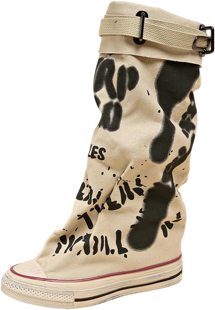 Women's Fold Over Canvas Boots Graffiti Print Canvas Lace Up Buckle Fold Over Distressed Sole Breathable Streetwear Footwear Features -The Shoe Lining Is Made of Microfiber Material, Which Is Comfortable And Breathable -Unique toe design -For Multiple Occasions -Portable Slip-On Specifications Name:Knee High Canvas for Women Material:Fabric Weight:1.7Pounds Included Contents:1PC*Knee High Boots Things to note: 1.This product uses standard European sizes. Please refer to the size chart we provide before purchasing, and choose the most suitable size according to your foot shape 2.We always put the customer's shopping experience first and are committed to bringing every customer a pleasant shopping experience. If you have any questions, please feel free to contact us by email, and we will reply you as soon as possible
