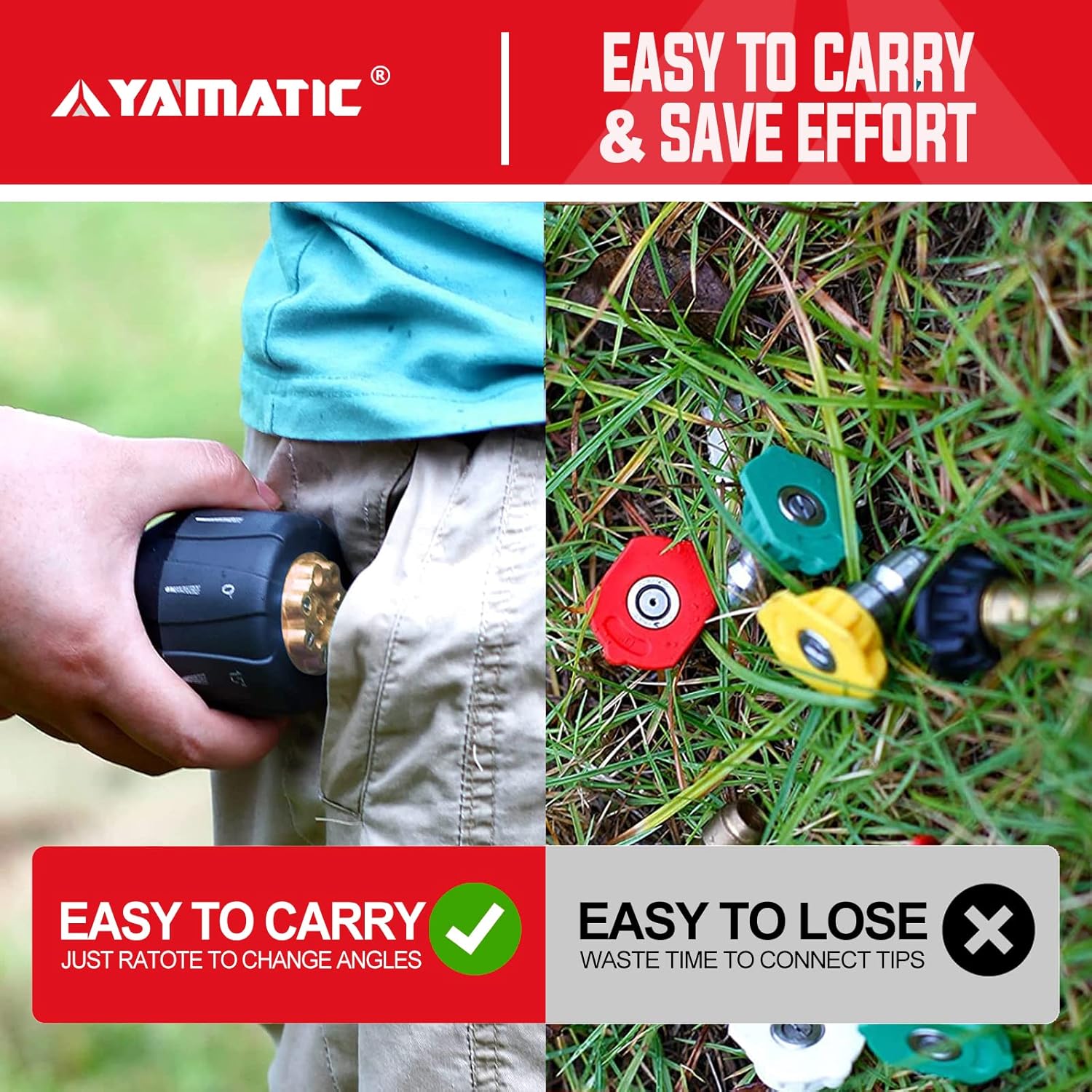 The package includes 1* pressure washer gun, 1* M22-14mm male to 3/8" socket adapter, and 1* 6-in-1 nozzle.